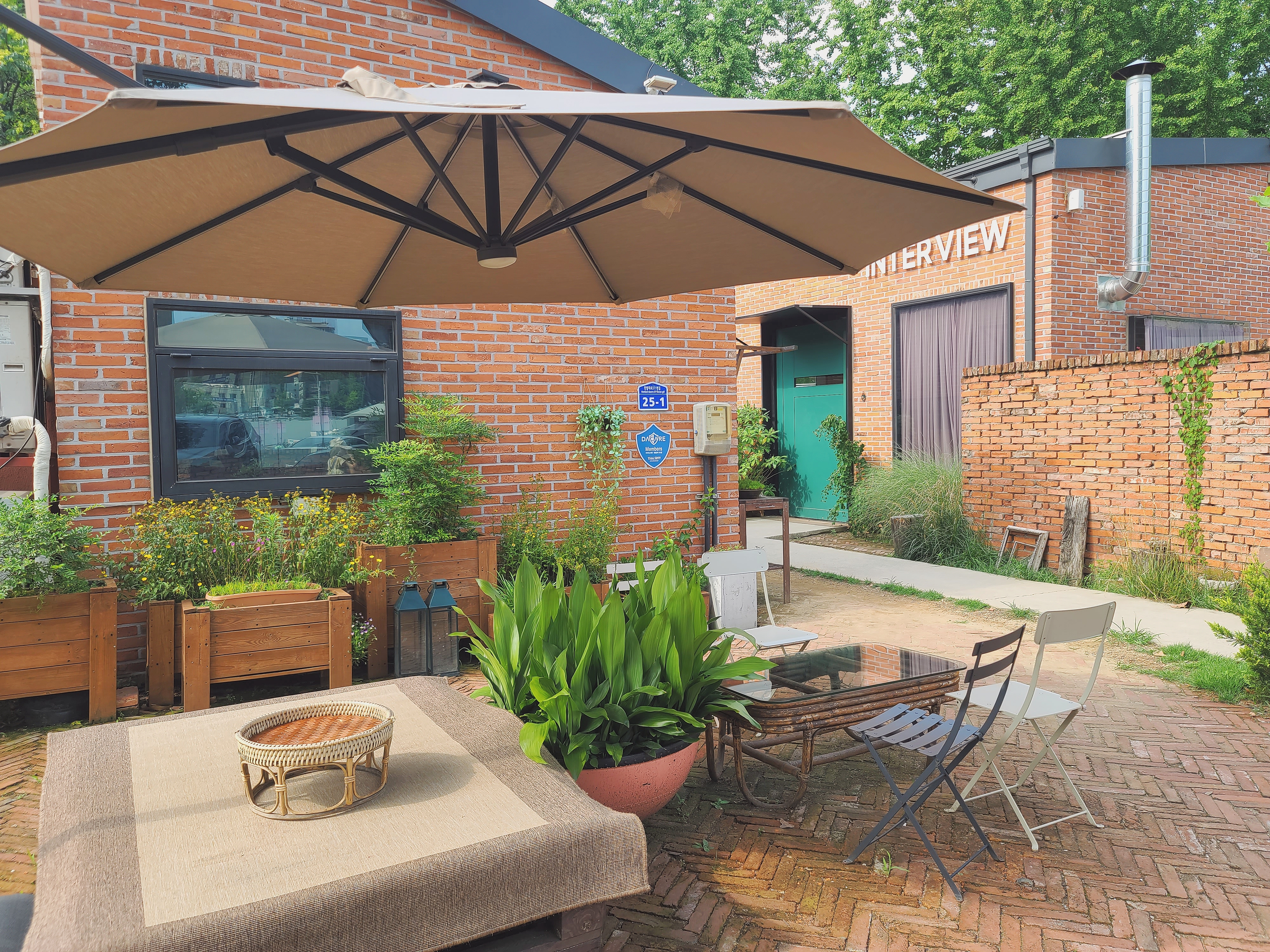 건물들 내부도 멋진 오브제들로 꾸며져 있는 매력적인 공간이었는데 사람들이 많아 내부 사진은 촬영하지 못했습니다. 7월 10일에 방문했는데 주말 오후라 그런지 실내는 거의 만석이었습니다. 차후 평일에 방문하여 공간을 즐겨보고 싶습니다. 커피 인터뷰는 지난해 개점한 '대전 신세계 Art&Science백화점' 가는 길에 잠시 들른 곳이었는데 거리도 꽤 가까웠습니다(차로 약 10분). 대전을 여행하시는 분들은 한 번쯤 들려보기에 좋은 카페입니다.